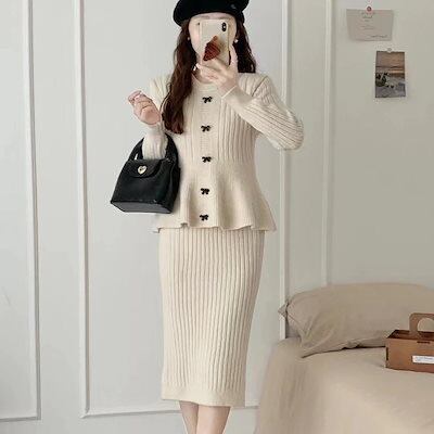 シンプル セットアップ 新作 2oo円OFF!】秋冬 レディースセットアップ 通勤 上下セット 気質 セーター 【2枚購入で ニットスカート