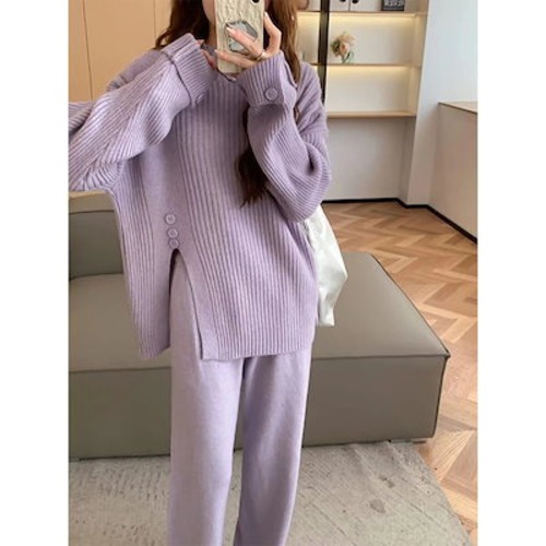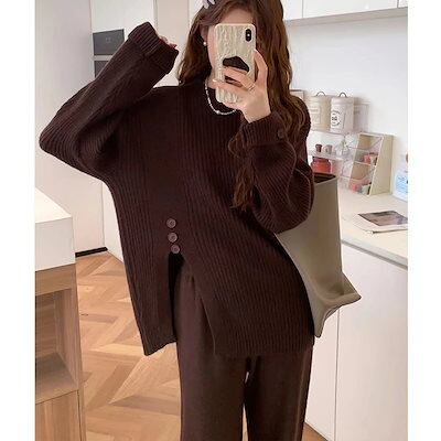 2oo円OFF!】秋冬 ニットワイドパンツ 気質 新作 【2枚購入で セーター レディースセットアップ セットアップ シンプル 上下セット