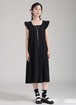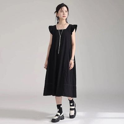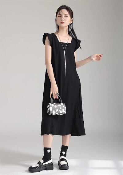 【J.Fashion】 夏 ミドル丈 ワンピース フライングスリーブ Aライン 着痩せ スクエア襟 レディース おしゃれ 関連商品は店で購入可能 メガ割