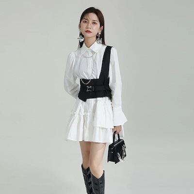 【J.Fashion】 Aライン ショートワンピース 不規則 ドッキングワンピース 体型カバーチュニック レディースワンピース シャツワンピース 「ベルトは店で購入可能」 メガ割