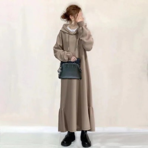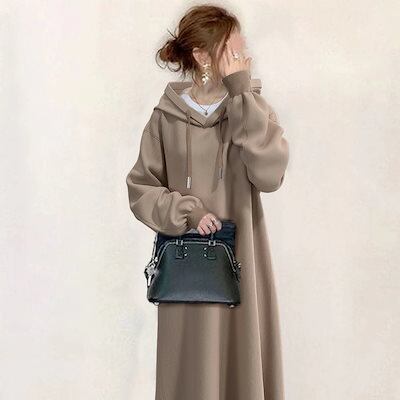 ワンピース 長袖 秋 aライン ワンピース春パーカーワンピース ロング丈 無地夕イトスカ一ト冬のワンピースリネンワンピ ロングワンピース フード付き レディース