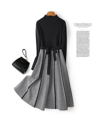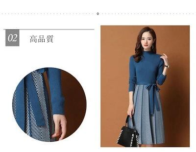 ニットワンピース レディース ベーシックニット 秋冬 きれいめ 膝丈ワンピース 長袖 リボン Aラインプリーツスカート ニット 結婚式ドレス 通勤 ロング 着痩せ オシャレ7