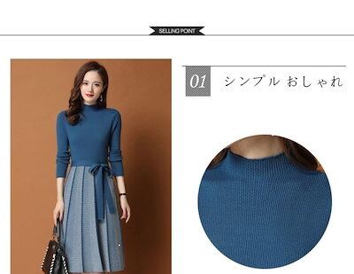 ニットワンピース レディース ベーシックニット 秋冬 きれいめ 膝丈ワンピース 長袖 リボン Aラインプリーツスカート ニット 結婚式ドレス 通勤 ロング 着痩せ オシャレ
