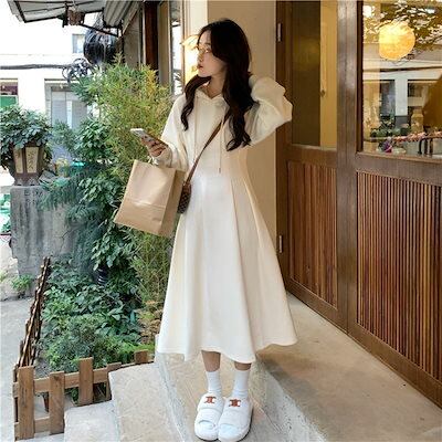 フレア 可愛い エレガント お出かけ 春 こなれ感 大人可愛い 韓国 ベーシック シンプル 長袖ワンピース 白 黒 ボリュームスカート 華奢見え 体型カバー 細見え ウエストシェイプ