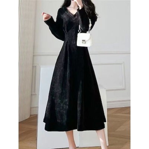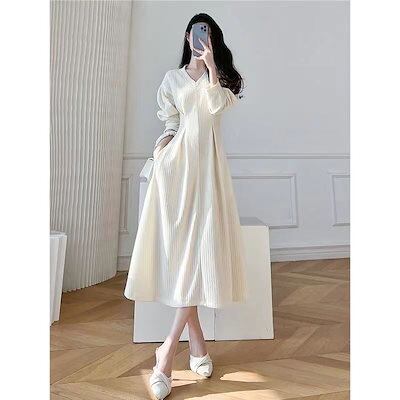2024新作 レディース 着痩せ 気質 脚長効果 やさしい ロングワンピ レディース 長袖 Aライン リゾートワンピース 韓国ファッション