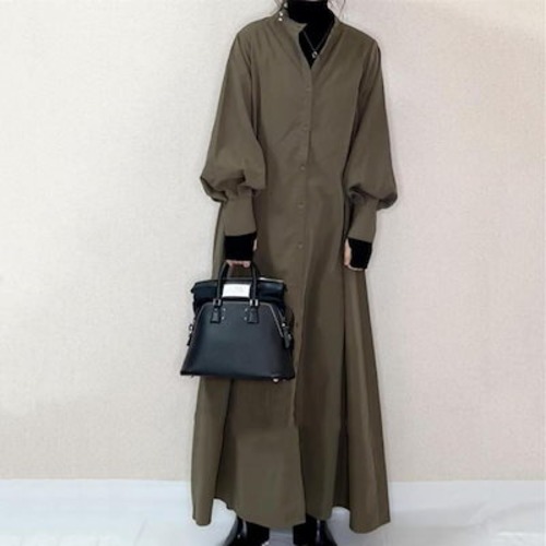 春夏 Aラインワンピース 長袖 ロングワンピース 通勤 着痩せ 高級感 ワンピース レディース