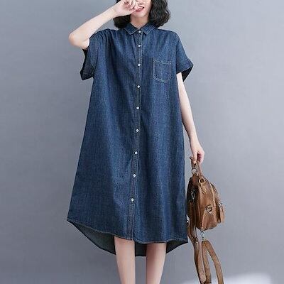 【2枚購入で 4oo円OFF! 】大きいサイズ 100KG デニムロングワンピース デニムワンピース 七分袖 きれいめ レディース 春 夏 秋 ロング デニムワンピ サロペット マキシ丈 Aライン 2