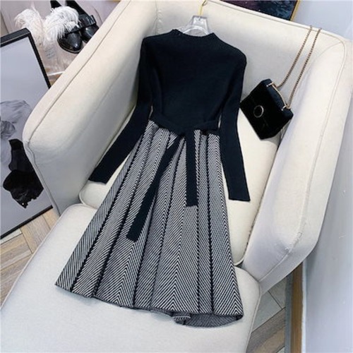 ニット ワンピース ニットワンピース レディースニット ミモレ丈 フレアワンピース プチハイネック 長袖 Aライン タックスリーブ フェミニン オフィス きれいめ 伸縮性 ストレッチ7