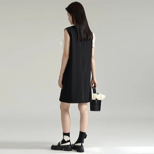 【J.Fashion】 Aライン 体型カバー チュニック ショートワンピース 蝶結び飾り ロングブラウス ノースリーブ ワンピース レディース おしゃれ 上質 関連商品は店で購入可能 メガ割 福袋
