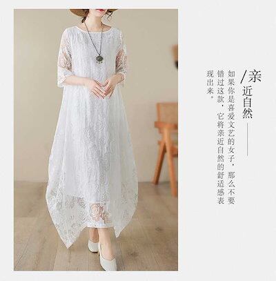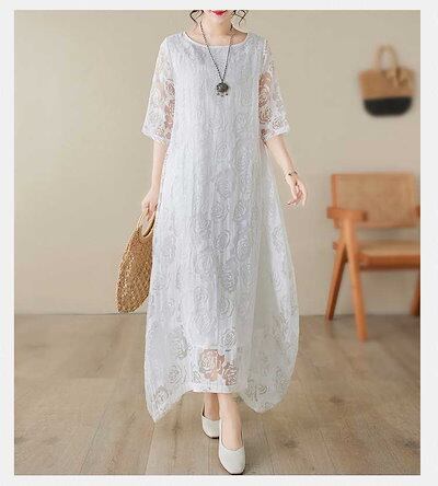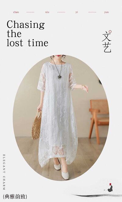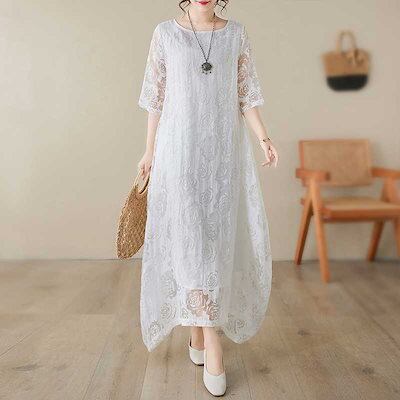 「ファットガール」 2024夏 民族風 レースワンピース ボヘミア Aライン シアー レディース ワンピース
