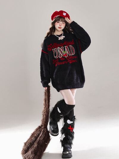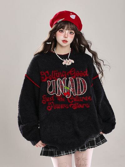 2024 秋 冬 レイジースタイル 長袖 韓国 ニット セーター トップス クルーネックストリートカジュアルシルエット色っぽ女っぽカジュアル大人っぽ上品サイズゆったりレディースゆったり春