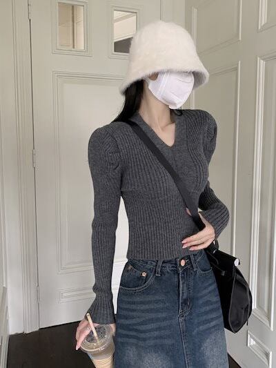 2024秋冬トップス 長袖 ニット 韓国トレンドコーデ セーター おしゃれ 色っぽ 女っぽ 丈カジュアルアップネックプルオーバーきれいめ大人系ファッションレディーススリーブアップフェミニン フレンチ
