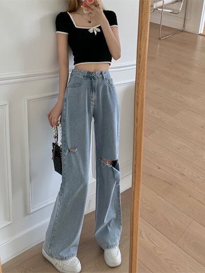 2024秋冬 デニムパンツ ボトムス ジーンズ ハイウエストファッション系スタイル ゆるダボ ジーンズ シルエット加工ゆったり レディース カジュアル 春夏 メンズライク