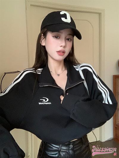 2024秋冬パーカー トップス 長袖 スウェット レディース ショート トレーナー おしゃれ カラバリ スタイルアップ 色っぽ ハーフ 女っぽ カラー カジュアル きれいめ 大人 ネック ファッション