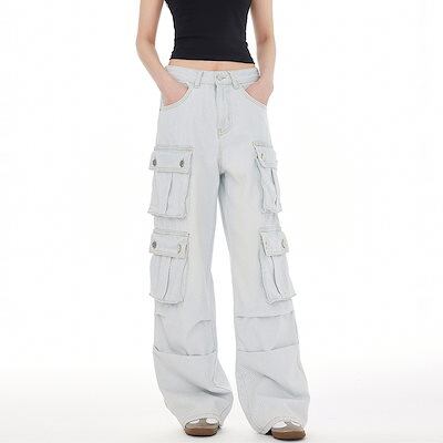 2024秋冬 デニムパンツ ボトムス ハイウエスト ジーンズ 黑 ファッション系スタイル ゆるダボ ジーンズ シルエット加工ゆったり レディース カジュアル型 春夏 メンズライク