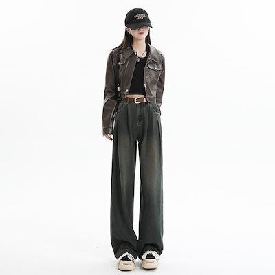 デニムパンツ 脚長効果!百掛けフレンチヴィンテージ 韓国ファッションワイドパンツ美脚ワイドパンツ スウェットパンツ デニムテーパードパンツ ゆったり ワイドパンツ レディース ロングパンツ