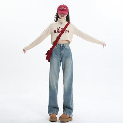 かっこいい!スラックスパンツ2025春の新作デニムパンツ レディース ワイドレッグ 見えやせ ハイウエストゆったり 垂れ感 おしゃれ