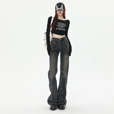 かっこいい!スラックスパンツ2025春の新作ハイウエスト デニムパンツ おしゃれ パンツ レディース ワイドレッグ ゆったり 見えやせ モップパンツ 垂れ感