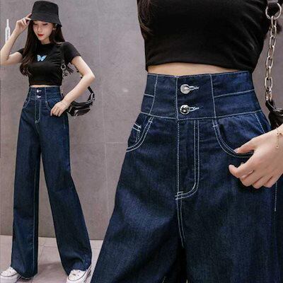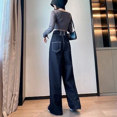 脚長効果!デニムパンツ デニム ワイドパンツ ハイウエスト 脚長 ファッション