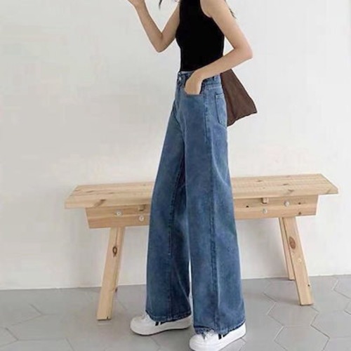 脚長効果!デニムパンツ デニムワイドパンツハイウエストレディース ファッション