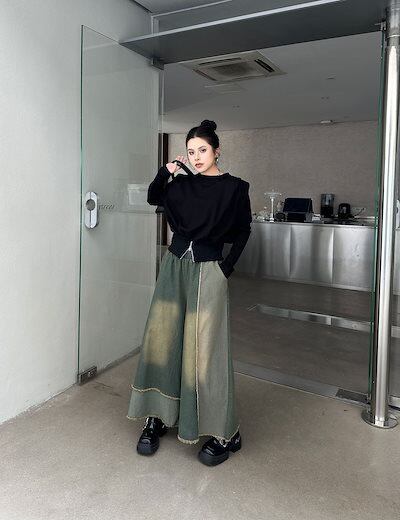 【J.Fashion】 2025春 デニムパンツ ドッキング色 ワイドパンツ ストレート おしゃれ レディース 関連商品購入可能 メガ割