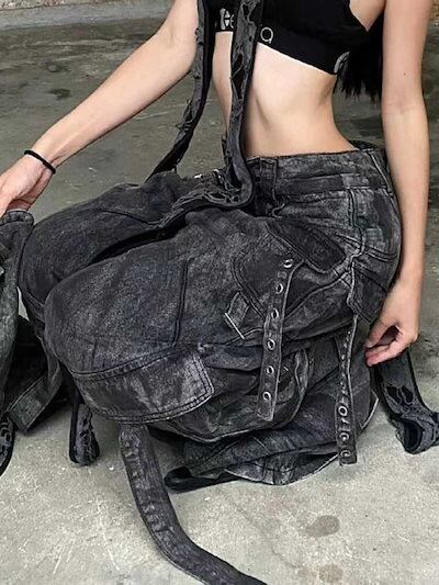 2024秋冬 デニムパンツ ボトムス ハイウエスト ジーンズ K-POP ファッション系韓国風スタイル ゆるダボウェア練習ジーンズ シルエット加工ゆったり レディースカジュアル型春夏メンズライク衣装