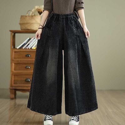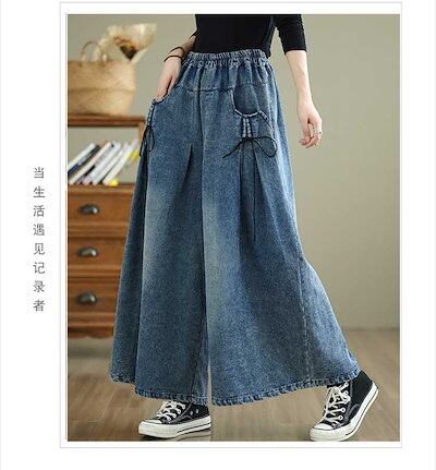 「ファットガール」 2024秋冬新品 デニムパンツ 大きいサイズ 体型カバー レディース ジーンズ ゴム ワイドパンツ ロングパンツ ハイウエスト メガ割