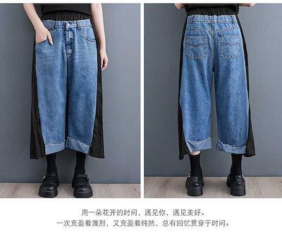 「ファットガール」 秋 九分丈 デニムパンツ ドッキング レトロ プリーツ ワイドパンツ ハイウエスト スラックス レディース ロングパンツ メガ割