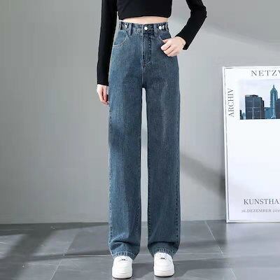 ハイウェストパンツワイドジーンズズボンストレートウエストゴムパンツレディースゆったりダメージW