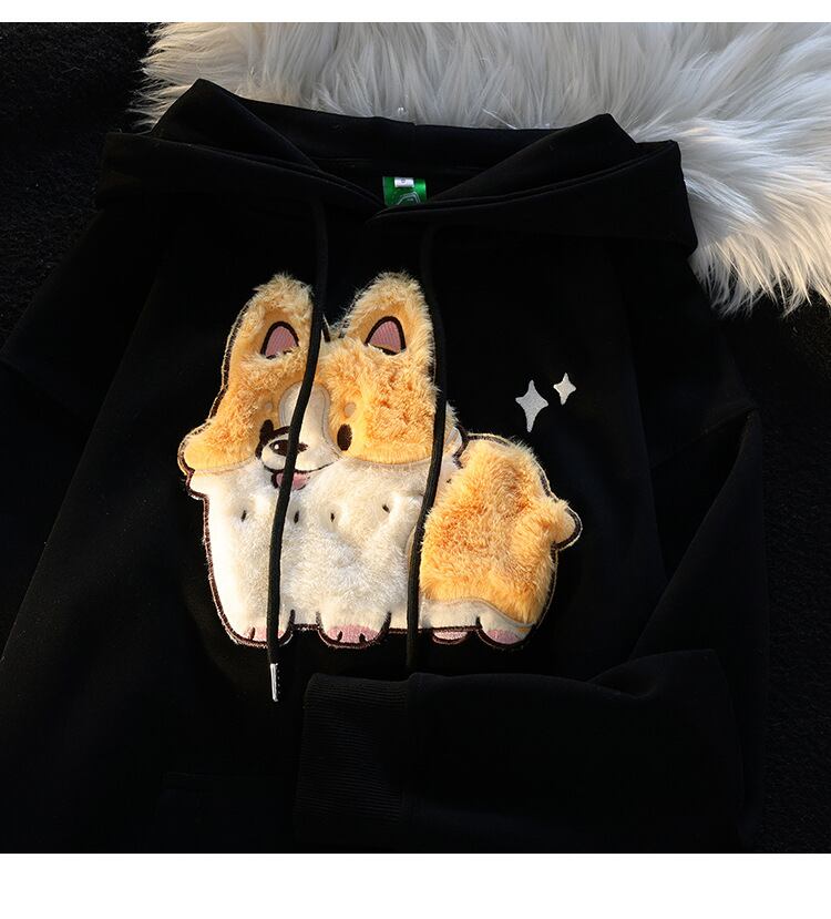 2025新作 犬柄 パーカー 長袖 裏起毛 刺繍 かわいい 体型カバー 着回しが利く レディース
