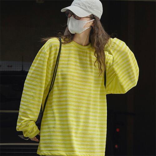 u25309トップス レディース パーカー 長袖 2024秋新作 ラウンドネック ストライプ 韓国風