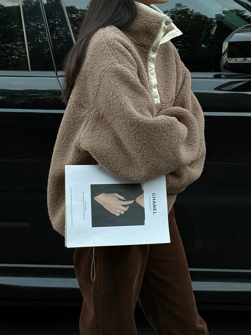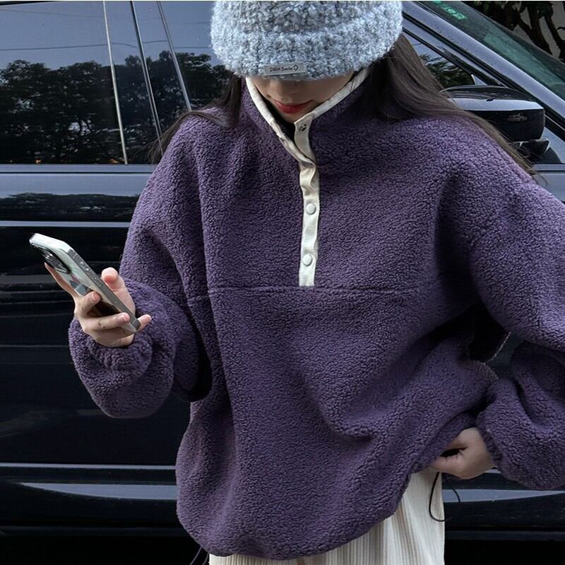u25718 トップス レディース パーカー ラムウール 2024秋冬新作スタンドカラー 保温