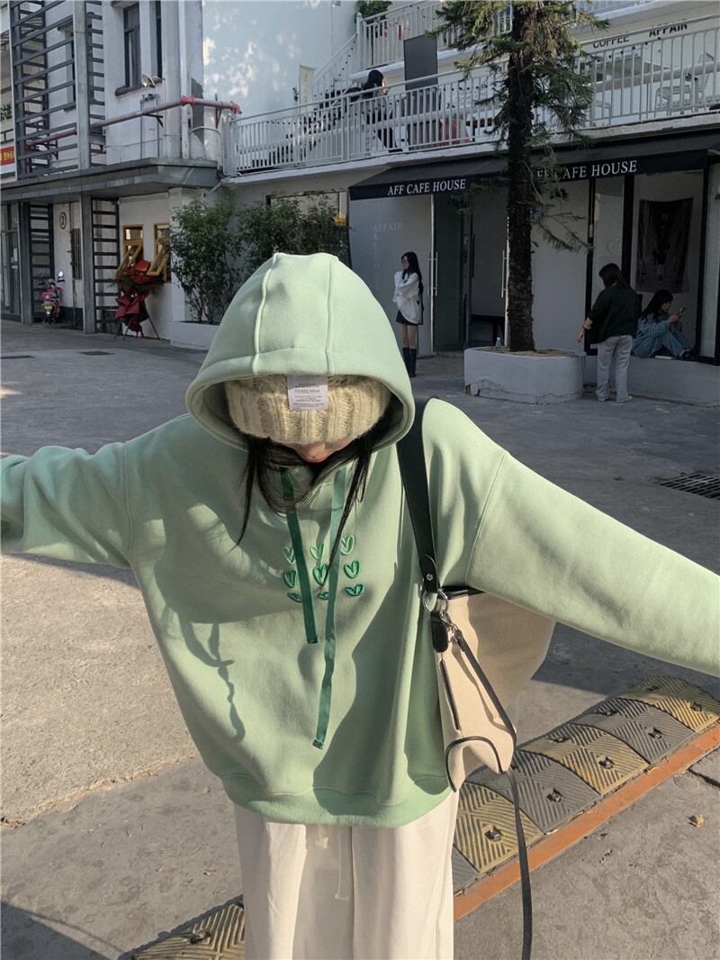 2024春新作 パーカー 長袖 着回しが利く ハート柄 刺繍 体型カバー 着回しが利く レディース