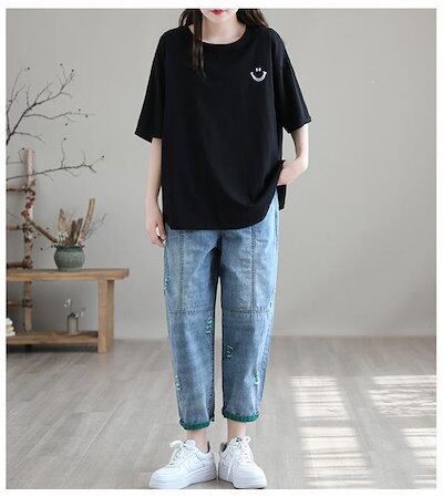 デニムパンツ 春 レディース テーパードパンツ ワイド ボトムス チノパン ジーパン ロールアップ 森ガール 春 無地 ズボン ウエストゴム 大きいサイズ 柔らかい ゆったり 体型カバー 薄手 オシャ