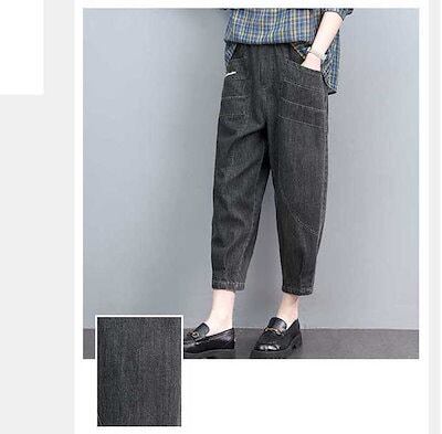 デニムパンツ テーパードパンツ レディース ワイド ボトムス ジーンズ 森ガール アンクルパンツ 無地 ズボン ウエストゴム 大きいサイズ デニム ゆったり 体型カバー 薄手 きれいめ アンクル丈 オ