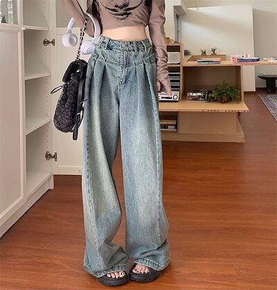 デニムワイドパンツ レディース デニム ワイド パンツ タックパンツ ロング丈 ジーンズ デニムパンツ ボトムス ハイウエスト リラックス ジーパン バギーパンツ ゆったり おしゃれ 体型カバー 着痩