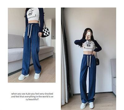 デニムワイドパンツ ひんやり 夏 涼しいパンツ レディース パンツ 爽やか デニムパンツ ジーンズ ストレッチあり ボトムス リラックス ウエストゴム ジーパン 薄手なデニム 長ズボン イージーパンツ