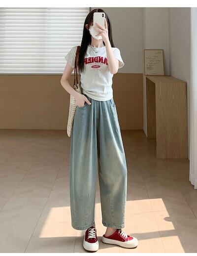 デニム ワイドパンツ レディース デニムワイドパンツ ジーンズ デニムパンツ ロングパンツ ボトムス コクーンパンツ 体型カバー 着痩せ ウエストゴム 大人 カジュアル 柔らかい ゆったり きれいめ
