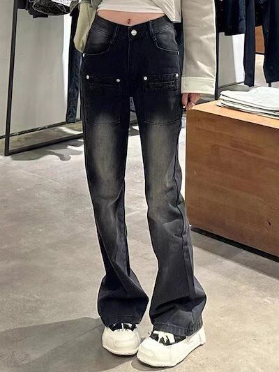 人气 新作 デニムパンツ ストレートジーンズ レディース 春秋 ゆったり スリム 黒 レトロ ワイドパンツ