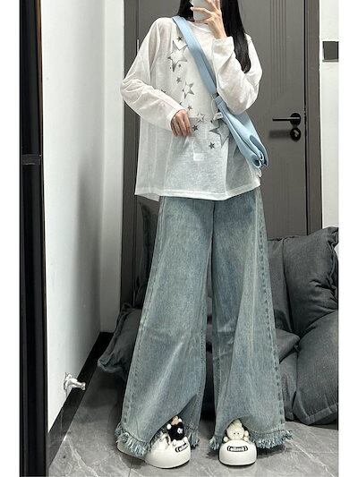 フリルがレトロなワイドパンツレディース春秋2024年新作デザイン感ハイウエストゆったりドレープ感モップスカート