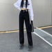 ワイドパンツ ハイウエストジーンズレディース2024秋新作ストレートパンツルーズトレーリングワイドパンツ