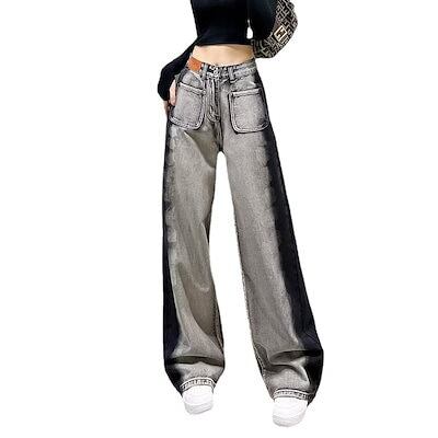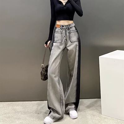 ワイドパンツ ブラックストレートワイドレッグドラッグジーンズレディース2024秋新作スキニー