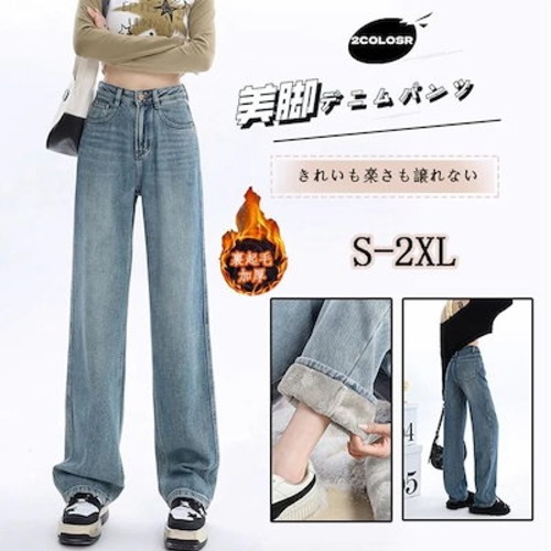 【2枚購入で 1oo円OFF!】レディースジーンズ 裏起毛 デニムパンツ ロングパンツ ロングデニム ハイウエスト 暖かい デニムボトムス スキニーパンツ ワイドパンツ 裏起毛ファッション