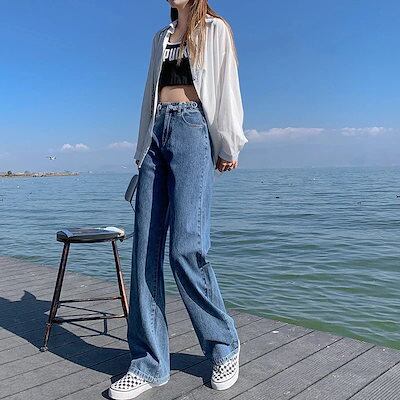 デニムパンツ 韓国版ファッションデニムパンツ レディースジーンズパンツ パンツ ワイドパンツ 人気 スリム 見せ脚 ロング効果 デニムパンツ 美尻 大人履き ウエスト調節可能4シーズン対応 春夏用
