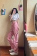リップド ワイドレッグ デザイン ハイウエスト ジーンズ パンツ夏 夏 パンツ ワイドパンツ センス ルーズ レディース ストレート 薄手 ピンク