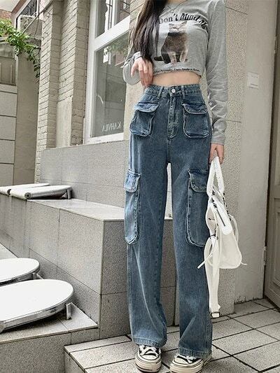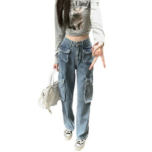 ワイドパンツ 2024春夏 新作 個性 ポケット ジーンズ ワイドパンツ ワイドパンツ