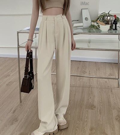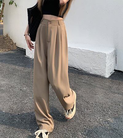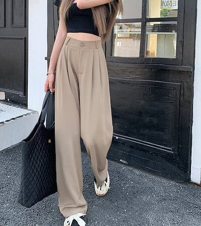【3日以内出荷】かっこいい!スラックスパンツワイドパンツダブルタック ドレープ ハイウエスト ルーズ スラックス ボトムス ストレート オフィス OL 韓国ガーリー カジュアル 韓国ストリート 上品