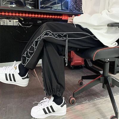 【3日以内出荷】かっこいい!スラックスパンツワイドパンツゆるっとストリート ジャージ パンツ サイドライン レースアップ スポーティー ユニセックスレディース 韓国ファッション