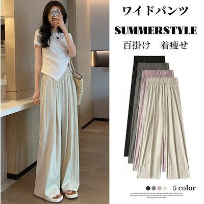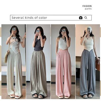 かっこいい!スラックスパンツ 接触冷感ボトムス 脚長効果!スキニーパンツ 韓国ファッション プリーツカジュアル ワイドパンツ 夏ズボン レディース 大きいサイズ 快適通気 ボトムス 着痩せ百掛け