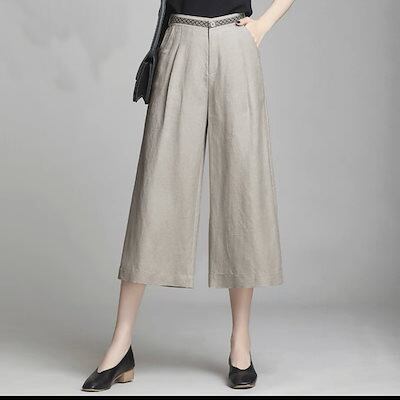 2025夏 新作 おしゃれ 気質 流行り ワイドパンツ カジュアルパンツ 着痩せ 百掛け 綿麻 ワイドパンツ スラックスパンツ